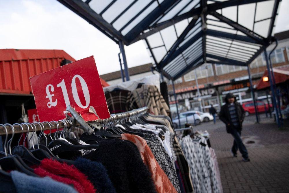 这是 10 月 7 日在英国曼彻斯特拍摄的一处集市上售卖的衣物。新华社发(乔恩 · 休珀摄)