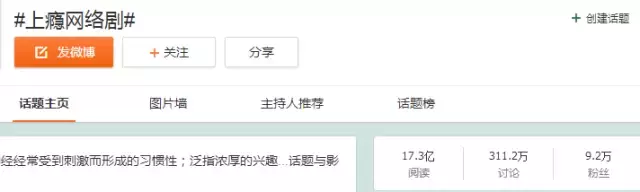 1月29日,网剧《上瘾》上线之后,引爆网络。爱奇艺、腾讯、B站、搜狐、优酷、土豆、PPTV、乐视等几大视频网站同步上线,上线24小时点击量过千万,刷新网剧首日点击量最高。2月9日进入网剧日播前十,点击过亿,,在当时豆瓣评分高达8.6分,微博热搜不亚于当时热播的《太子妃升职记》。