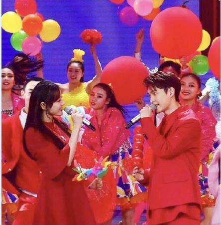 两人身穿红色礼服,手拿滑稽道具,演唱《中国喜事》,让人感受到了他们之间的默契和默契背后的互相理解。他们的表现十分俏皮,像是两个小孩子一样。但是,两人在节目中并没有任何暧昧的举动,没有过多的互动,只是在唱完之后微笑着互相鞠躬致谢。