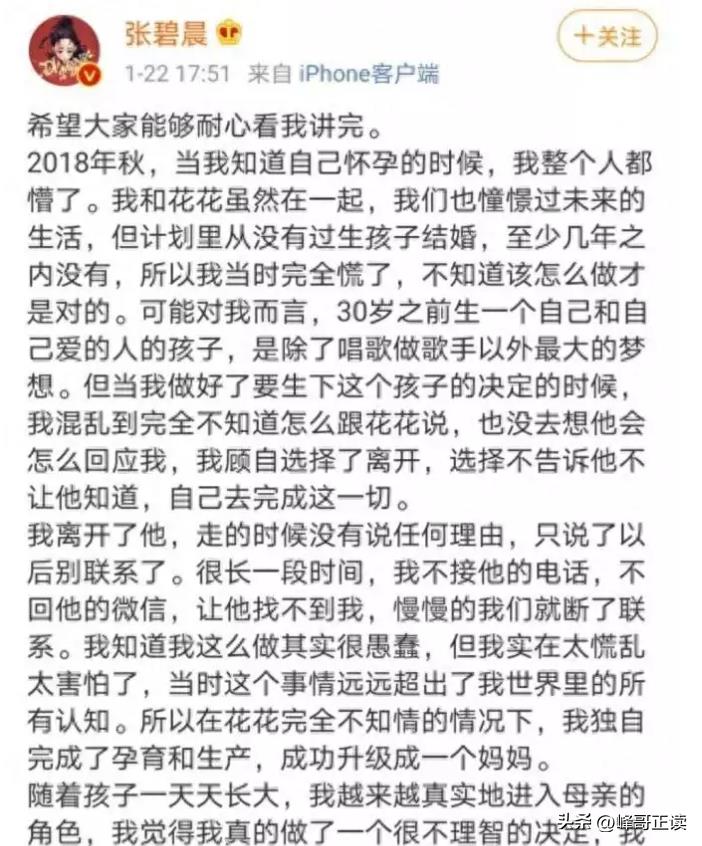 不过随后,张碧晨也是在微博长篇大论的解释:这个孩子确实是自己和华晨宇偷偷在一起时意外怀上的,至于决定要生下来也完全是自己的决定,与华晨宇无关。