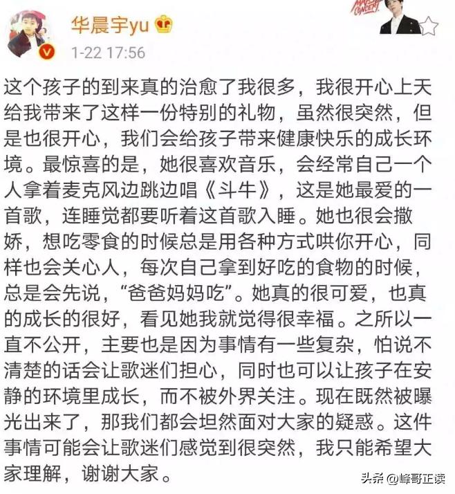 但华晨宇的此次爆料才让大家得知——这对“相爱至深”的地下恋人竟然已经有了孩子。
