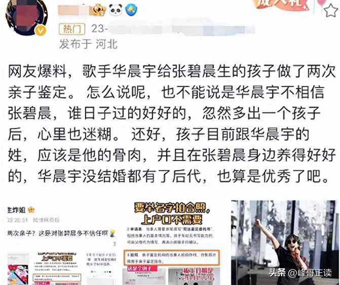 事实证明,华晨宇还是夸下了“海口”:临近给孩子上户口之时,他竟然要求与孩子做一次“亲子鉴定”。