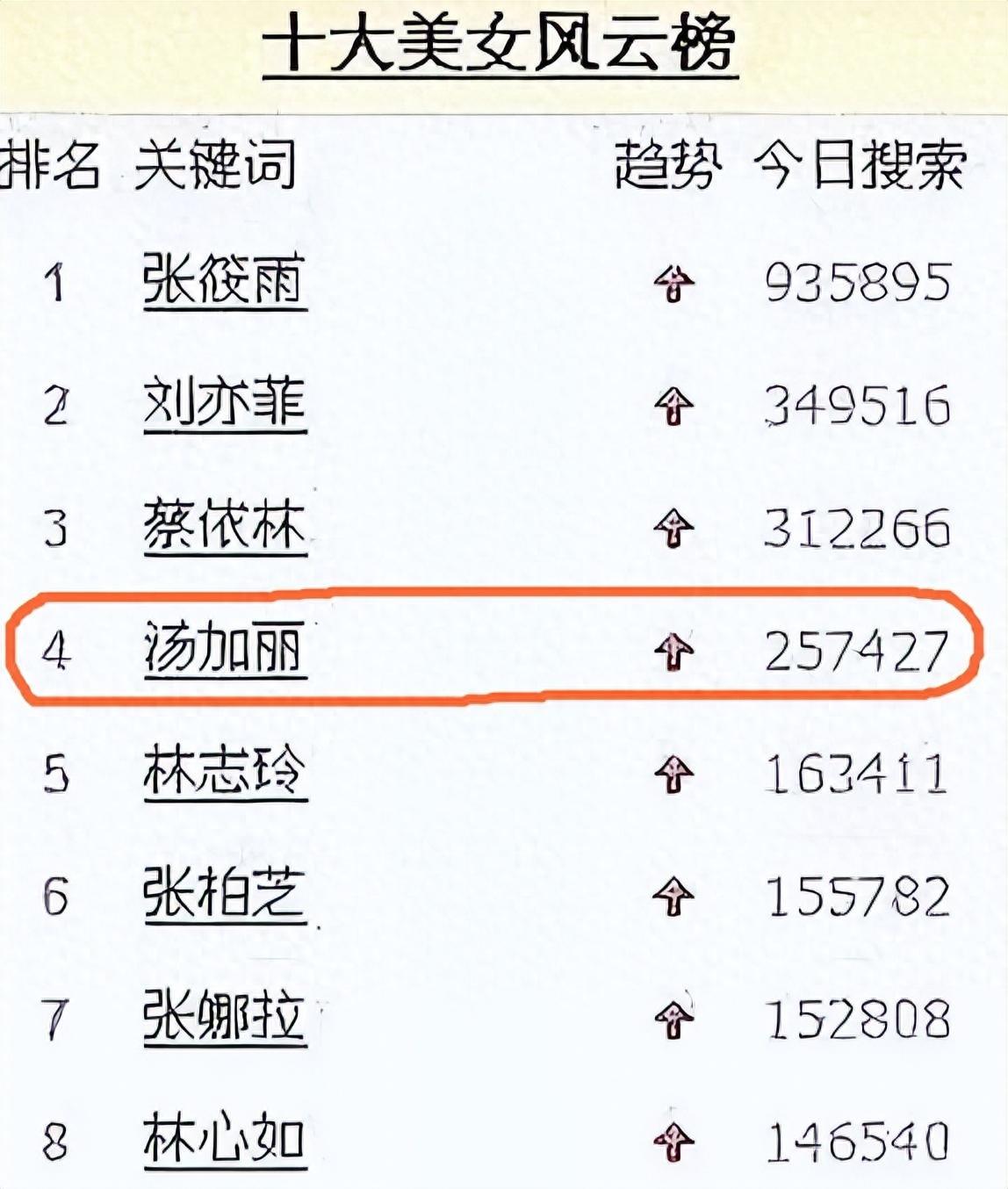 那时候网上的搜索量张筱雨的名字稳坐第一,被称作“古今第一美女”的刘亦菲也只能屈居第二,并且两个人的搜索量相差了一倍之多。