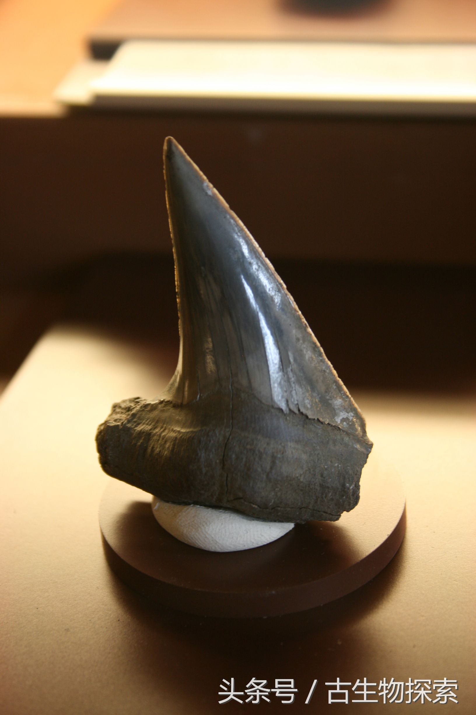 图注:白垩刺甲鲨的牙齿化石,注意其边缘光滑没有锯齿,图片来自维基百科