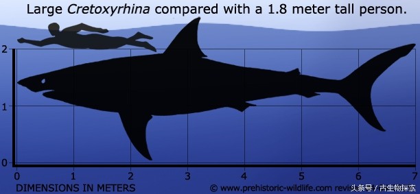 白垩刺甲鲨体长可达7米,体重约3.5吨,和今天最大的大白鲨差不多。白垩刺甲鲨与大白鲨算的是上远亲,尽管两者并没有直接的进化关系,但是却同属于鼠鲨目。