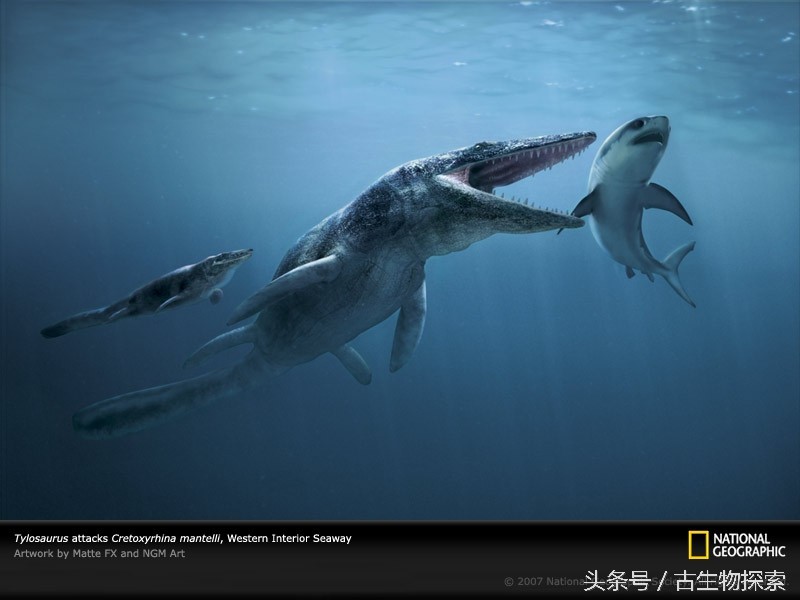 图注:在西部内陆海中,白垩刺甲鲨大部分时间是海王龙的猎物,图片来自网络