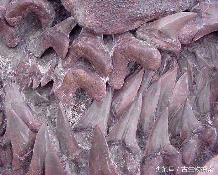 图注:大量保存至今的白垩刺甲鲨牙齿化石,图片来自网络
