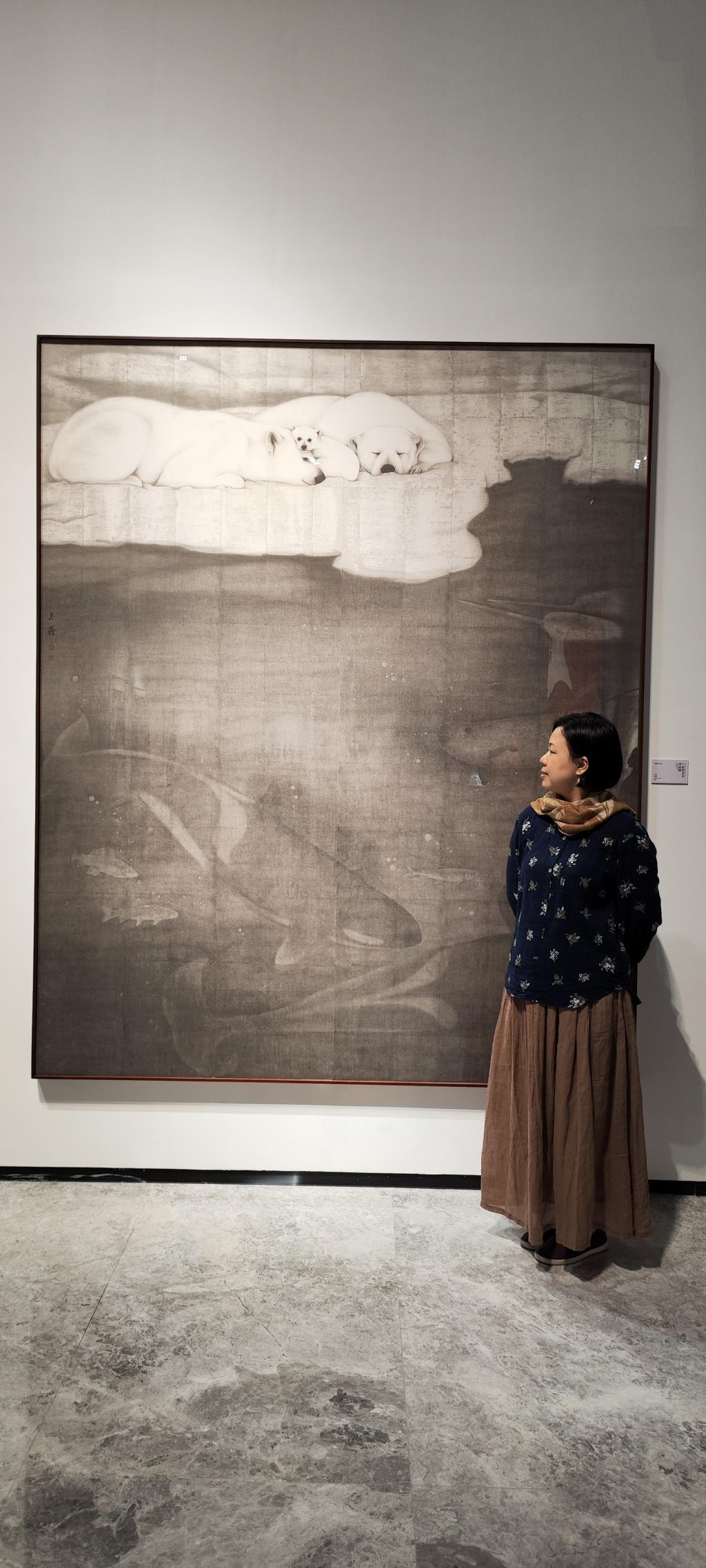 罗玉鑫:《休戚与共》这幅作品构图采取了一个富有想象力的空间转换,冰层之上是一个平远式视角,透过冰层切面往下转换为纵深的北冰洋。