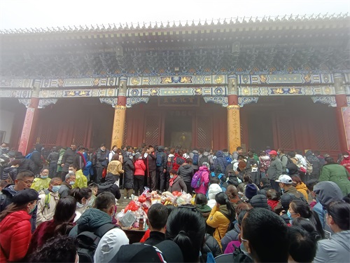 经过了再三的努力,我们终于到达了南天门,泰山的山顶基本上到了,虽然还有继续往上走,但最艰难的十八弯终于过来了。看不到尽头的楼梯终于结束了,可以好好地休息一下。山上拥挤的人群分散在各处,呼呼的寒风刮得直哆嗦,我慌忙地带好帽子,口罩。看了一眼天空,雾还是很厚,薄的地方有点明亮耀眼,好像太阳要钻出来一样。我和同事找了个面馆,点了碗面,等待面时,身体一阵阵寒意袭来,湿了的衣服与皮肤粘合在一起,冰冷好像无处不在,我一次次的摇晃大腿来索取温度,但停下来之后,身体的热量在一点点丢失,直到心开始颤抖,面怎么还不来,我一次次的问服务员。