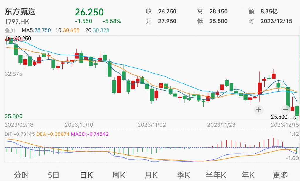 二级市场方面,截至目前,东方甄选股价报 26.25 港元,公司总市值约 266.44 亿港元。(本文首发于钛媒体 APP,作者|陈伟纳)