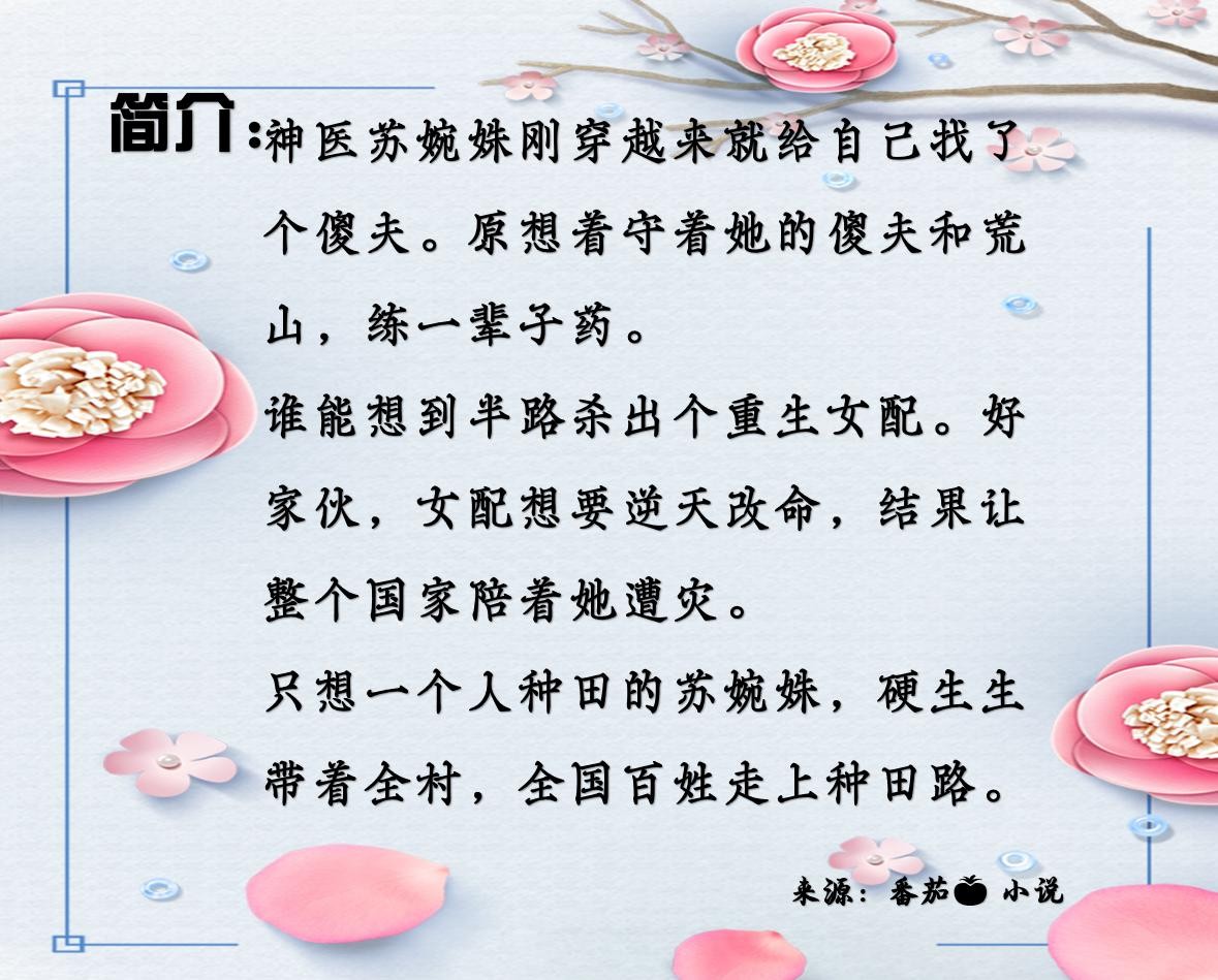 点评:这种平淡又温情的种田故事,女主为人也比较低调真实,没有很夸张的金手指,没有太糟心的极品,文笔不错,看着很舒心。