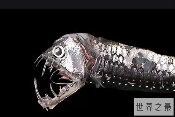 毒蛇鱼,这是一种深海鱼,主要生活在的热带至温带海域,它们的牙齿,长而伸出,有利于捕捉猎物,胃具有弹性,可以根据猎物的大小自由伸缩,它身上的发光器,主要用来诱猎物的。