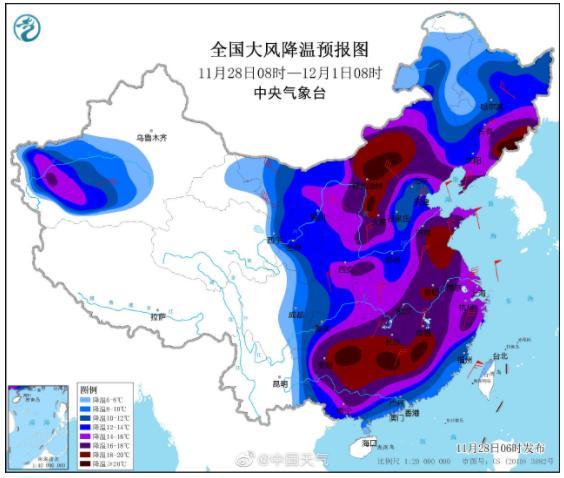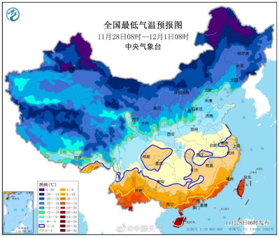 最低气温0℃线将南压到江南北部至贵州南部一带