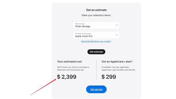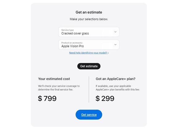 如果用户购买了 AppleCare+ 服务,Vision Pro 玻璃盖板损坏或其它地方损坏,维修费用均是 299 美元(约合人民币 2150 元)。