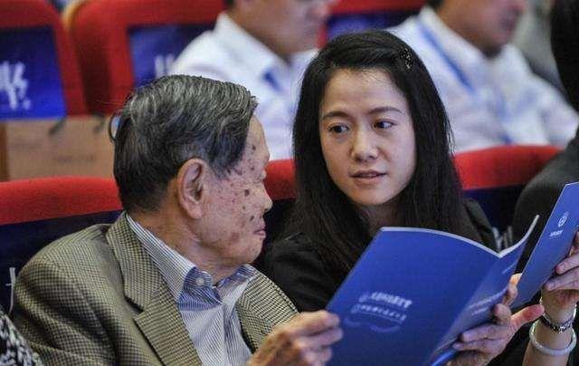 已经96岁的杨振宁拄着拐杖神采奕奕。翁帆在旁满眼爱意紧盯杨振宁。