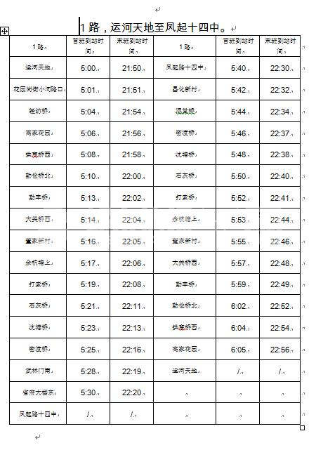 为全面落实治理城市交通拥堵工作要求,自9月29日起,公交一分公司1路实行首末班次到达各站点的时刻。