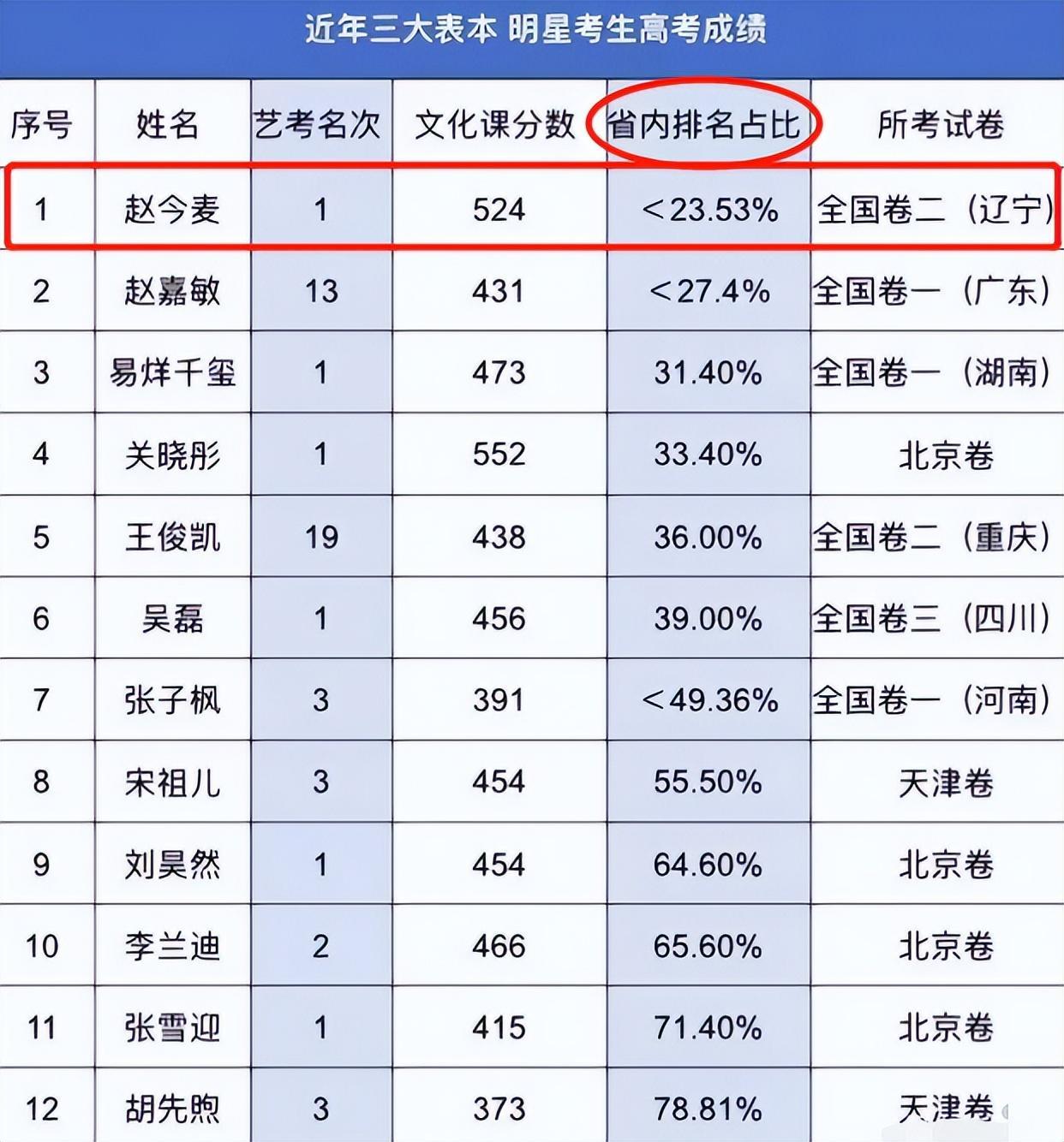 尤其是赵今麦一直在沈阳上学,高考成绩高低,不仅要看分数,还要看省排名。全省前24%的名次,即便不参加艺考,也能考上一所不错的一本院校。