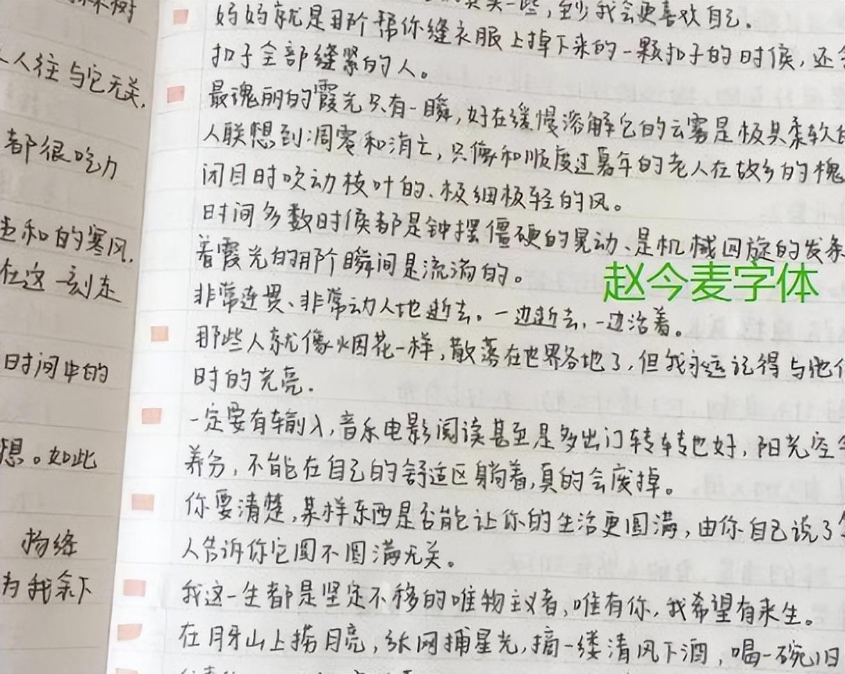 很多学生好奇,为啥拍戏占据了她那么多学习时间,赵今麦还能考出这么好的成绩。看过她的学习笔记就明白了,颇具学霸潜质。思路清晰条理分明,工整得像印刷体一般,跟衡水字体有一拼。