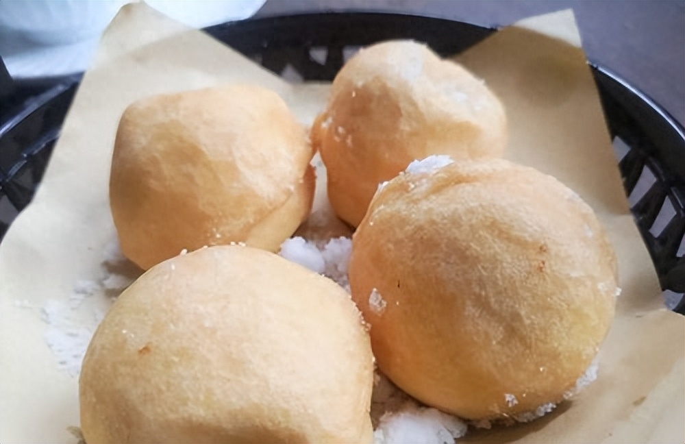 这道美食一定是许多当地80,90后的童年回忆。当时只有在逢年过节或者婚丧嫁娶上才会有这道美食。它的制作方法比较另类。是用猪网油包上豆沙咸蛋黄等食材入锅炸制而成。成菜看上去金黄诱人,吃上去更是鲜咸适宜。