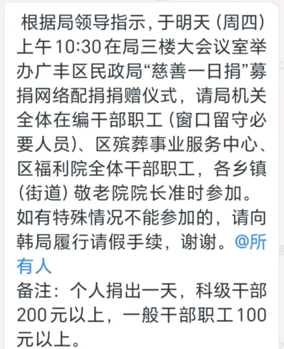 科级干部捐200元一般干部捐100元?江西广丰民政回应“摊派慈善募捐”:系自