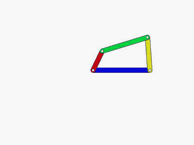 图中红色杆件为机架,固定不动。并且红色杆件与蓝色杆件的长度之和小于或等于绿色杆件与黄色杆件的长度之和。