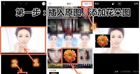 如何用手机将美女照片和鲜花图合成?