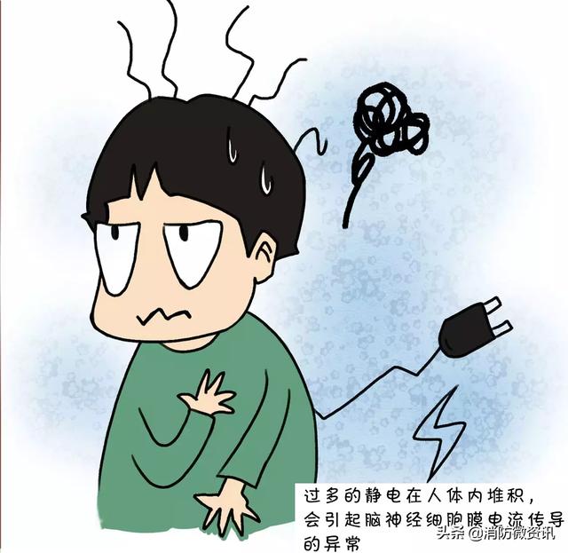 过多的静电在人体内的堆积,会引起脑神经细胞膜电流传导异常,影响中枢神经,使人出现头晕、头痛、烦躁、失眠、食欲不振、焦躁不安、精神恍惚等症状。