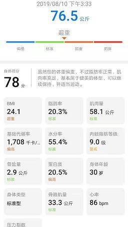 如今的体重秤,可以秤出多种数据,体重只是其中一项而已。