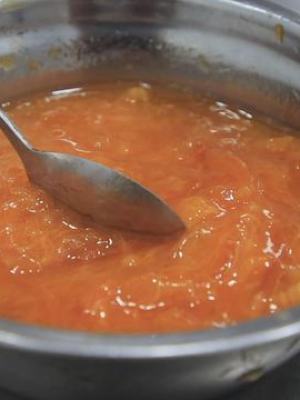 煎柿饼最好不要上手,这个柿子糊特别的粘,冻的柿子怎么吃,一上手你就后悔了,两只手在柿子糊里面想拿出来就难了,柿子怎么吃不伤人,晒干的柿子怎么吃,柿子怎么吃法,就像那人跳进了淤泥坑,越挣扎越出不来。所以咱今个用勺子挖粘手。