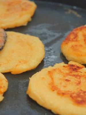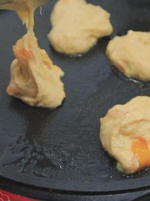 柿子饼要勤翻多翻上几个来回煎脆到两面金黄柿饼珍珠就熟了。