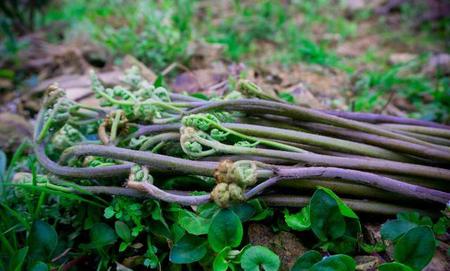 春牙,春牙还要过几天才发起来,看到发起来有一小卡那么深的时候去采来 ,生的凉拌也可以,炒肉也可以。我看到这个菜是我们这里市场卖得最贵的了,前几年就卖6、7十块钱一斤。
