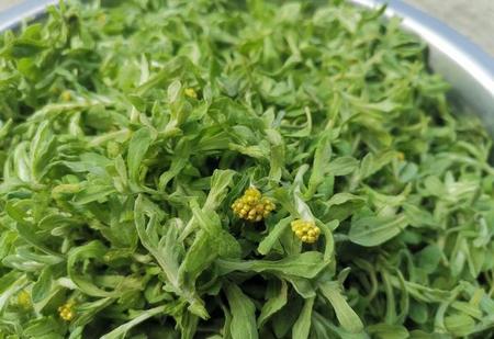 柴胡,还过几天,柴胡发起来了,就可以去采摘嫩稍,采回来后,放在开水里焯过水,拿起来凉拌,也可以蘸辣椒,蘸酱那些蘸着吃。