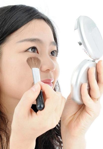 打腮红也是弥补气色的好办法呦。画完了妆脸上未免会显得“死白”,很不自然。想要拍出来清新自然,避免“僵尸脸”,就需要打一下腮红。腮红不能打太多,只需要淡淡的一抹粉红色,不然会抢了眼妆和口红的风头。