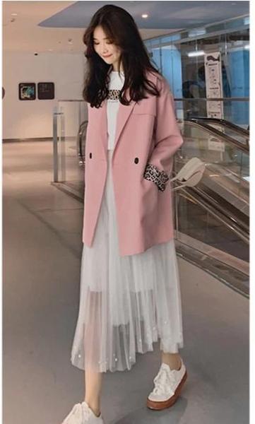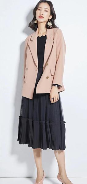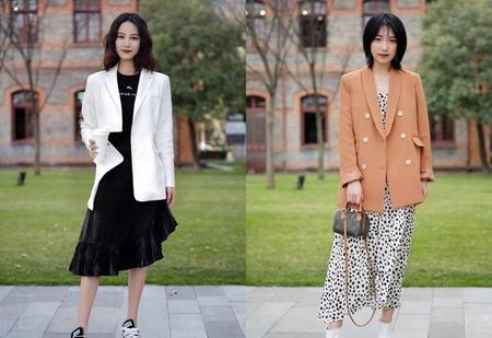 西装搭配裙子可是最基础的搭配方式了,西装是一种比较中性风格的单品。而裙子又具有温柔的特点,两者综合在一起会混搭出奇妙的感觉。温柔中又不失帅气,酷酷的少女风也会带着一些甜美。