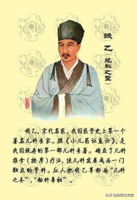 第八位:钱乙。宋朝人。是著名的儿科专家。儿科著作有《婴孺论》、《小儿药证直决》等,以脏腑病理学说立论,根据虚实寒热立法开方,比较系统地作出辩证施治的范例。
