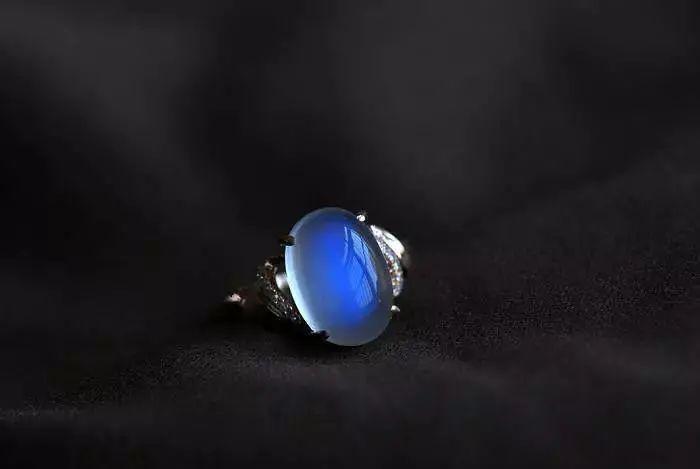 蓝色月光石是月光石中价值最高的品种。静谧蓝月光,透明底色略带蓝色月光晕彩。蓝色象征沉稳、理智、准确,氤氲出安静与广阔的气息。
