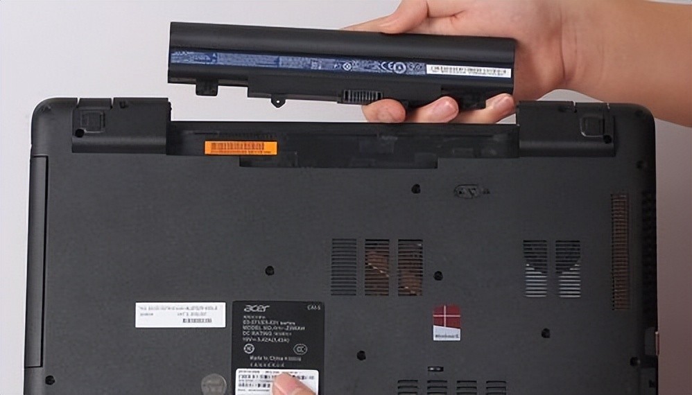 3、还有一个办法就是,如果笔记本是可拆卸式的电池,我们将电源适配器电源线拔了,电池卸下来,重新将电池安装上去,并开机。