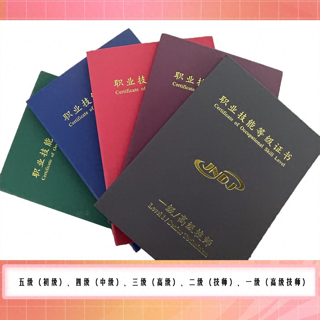 职业技能等级证书包含:初级(五级)、中级(四级)、高级(三级)、技师(二级)、高级技师(一级)。