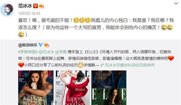 范冰冰和李晨一起拍封面 甜蜜称呼大黑牛为“我晨儿”