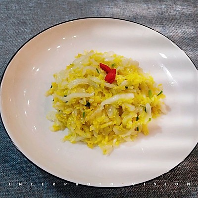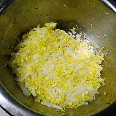 1、一个白菜心切丝后用一点盐盐10分钟。