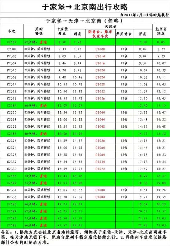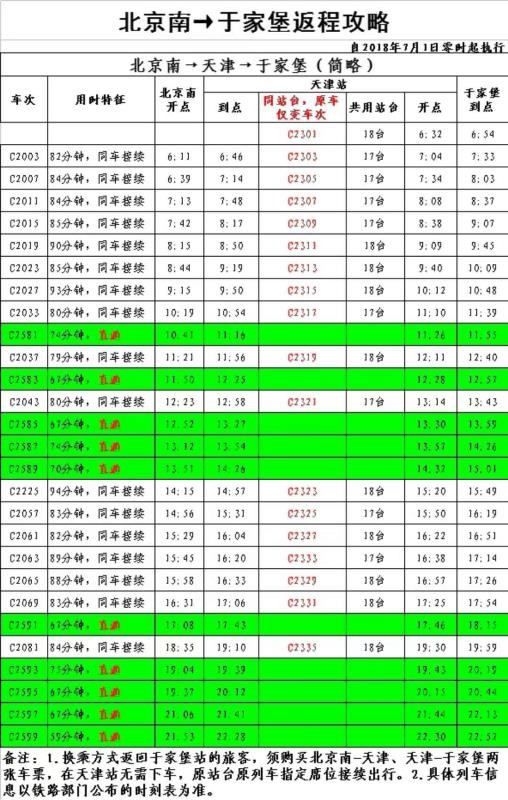 于家堡至北京南便捷往返新攻略 不换站台 仅换车次