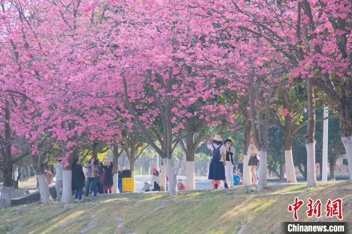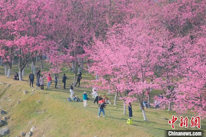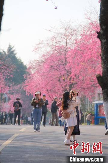 阳春三月,春樱盛放。3月4日,记者在大理大学内看到,校园里的春樱竞相绽放。从空中俯瞰,道路两旁开满樱花,漫步校园,就像走进花海一般。