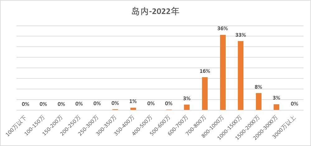 2022年,800万以下的占比提升了,新楼盘开始配置相对较小面积产品,门槛下探。主力还是保持在800-1500万。限价政策——稳房价的利器。