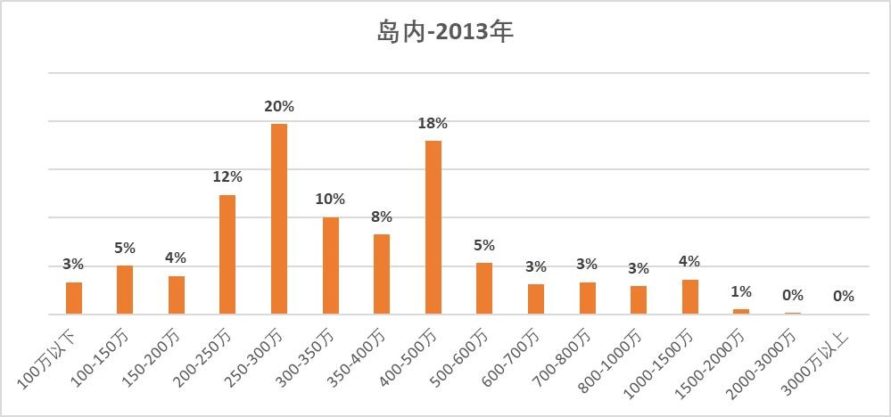2010年,岛内成交总价主要集中在100-250万(岛内的门槛现在看起来 曾经那么低,虽然在当时很多人也是高攀不起)。