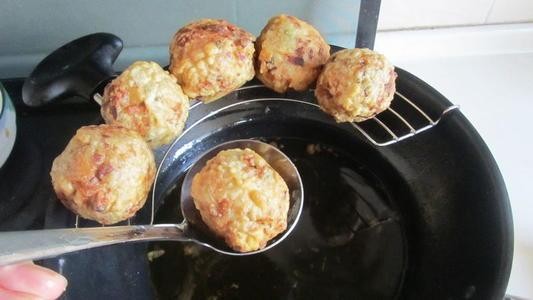 4.将锅烧热,倒入一定量的油,开大火烧至发热,将裹有面粉的糯米团放入锅中炸至金黄色后捞出,即可食用。