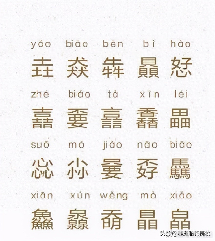 15、骉,读作:biāo;本意是众马奔腾的样子。