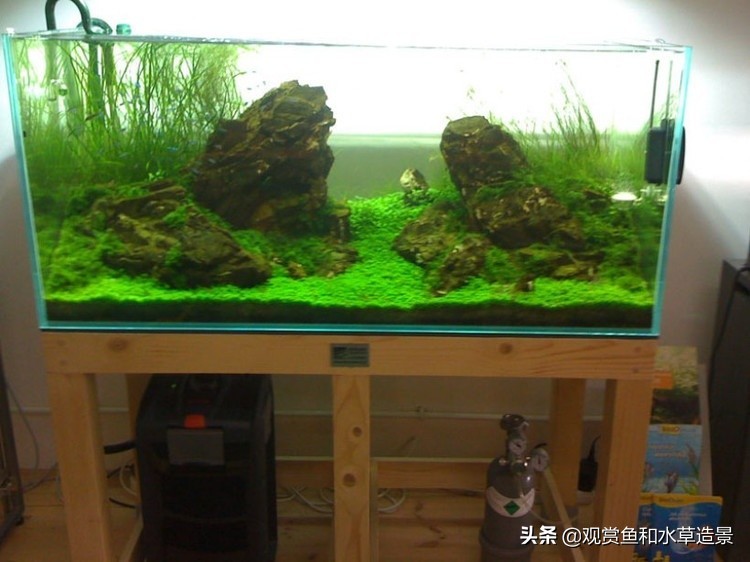 水草中部和前部种植矮珍珠,营造碧绿草原的感觉。