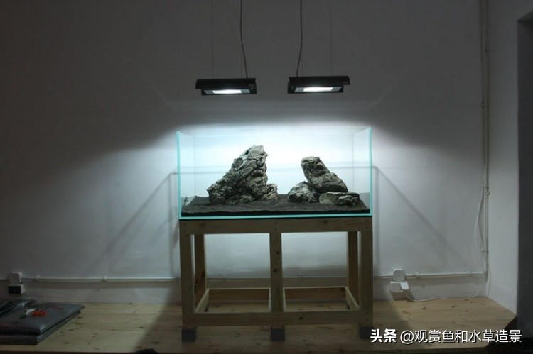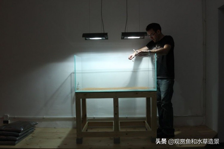 在架设好的鱼缸底部铺上底肥,有条件的也可以使用ADA的开缸五宝。