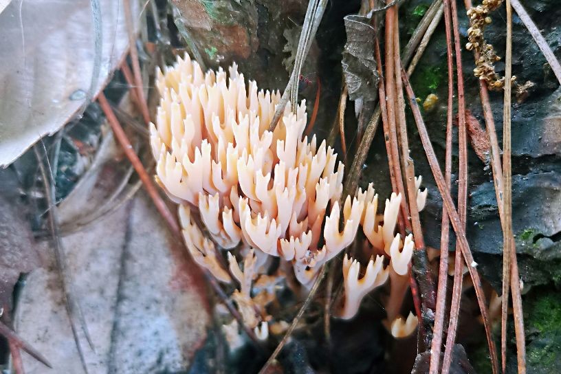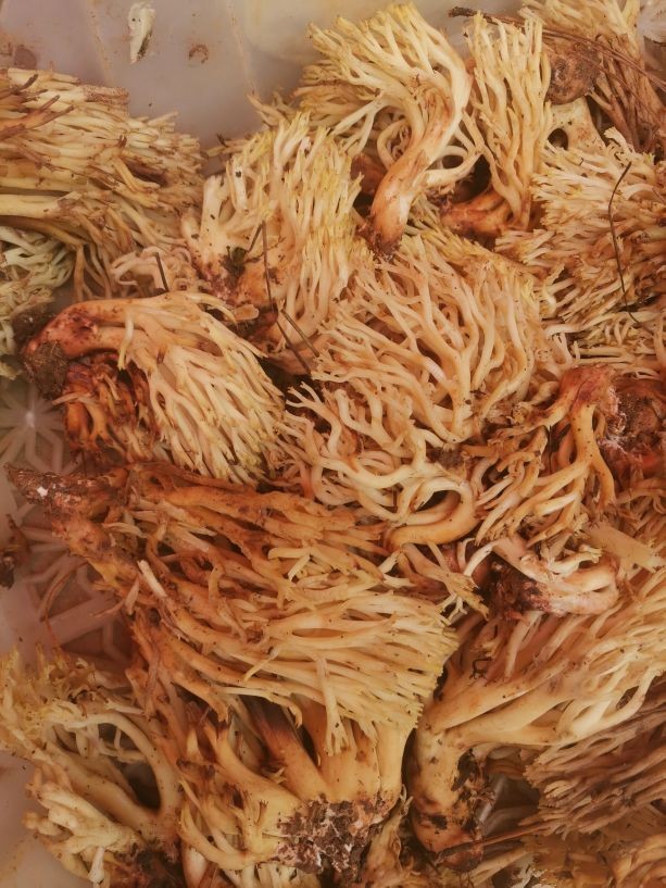 扫把菌在之前介绍干巴菌的时候提到过,其外形类似扫把而得名,扫把菌颜色不统一,有肉红色,粉白色,淡紫色,枯黄色等等,不同的地方捡到的扫把菌略有差异。