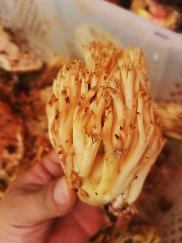 扫把菌也有个洋气的名字叫做珊瑚菌,自然也是因为外形而得到的名字,说实在话,这个名字不知道从哪里传来的,在云南这样的内陆地区,祖祖辈辈都看不见大海的地方,纯朴的乡亲并不认识什么珊瑚,反而叫做扫把菌更加地道。